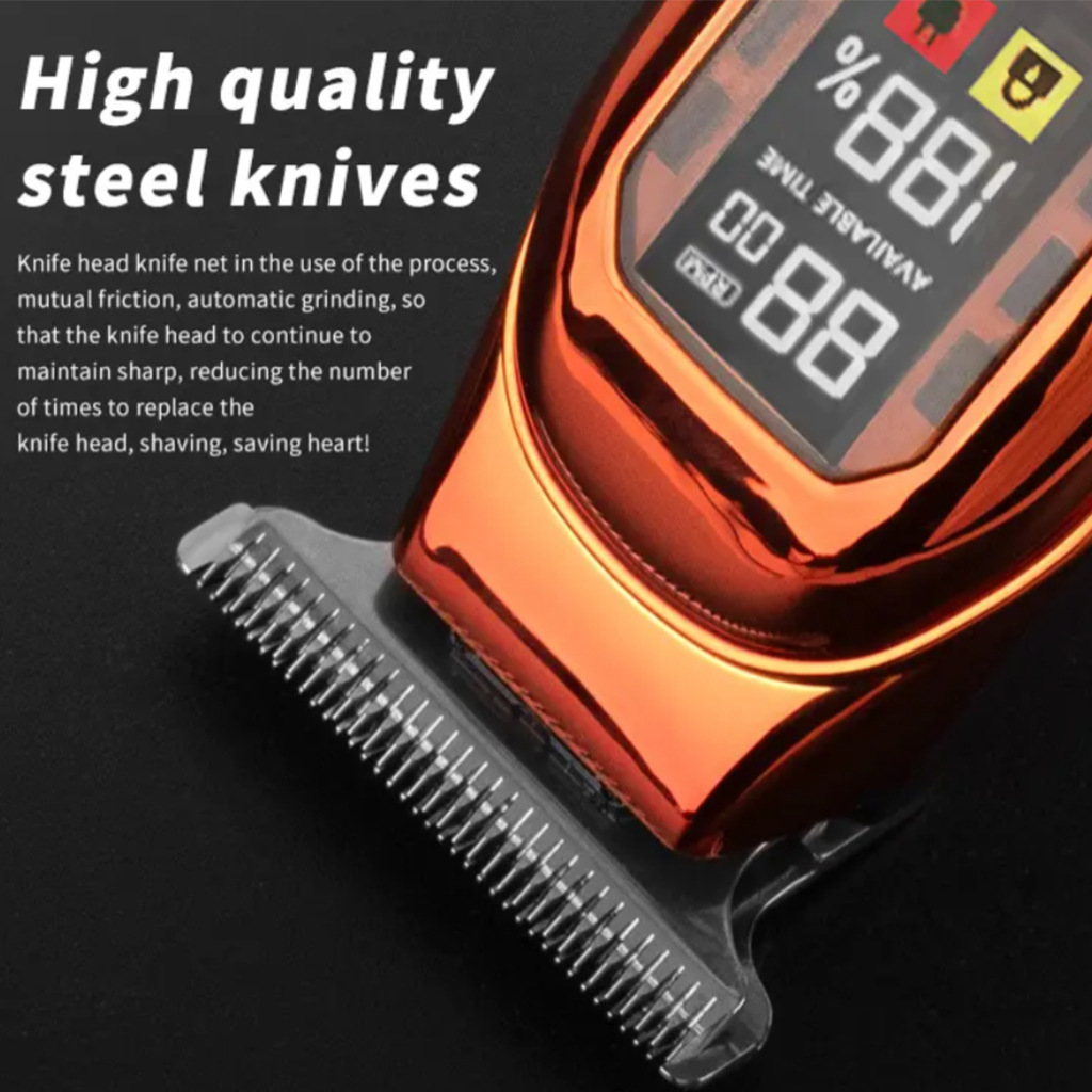Ova profesionalna mašinica za šišanje i oblikovanje brade osigurava preciznost i lakoću u svakom potezu. Sa digitalnim prikazom koji prikazuje nivo baterije, lako možete pratiti kada je vreme za punjenje. Mašinica je opremljena visokokvalitetnim noževima od nehrđajućeg čelika za savršeno glatko šišanje i dugotrajnu oštrinu. Uz više različitih nastavaka, omogućava prilagođavanje dužine šišanja prema vašim željama, bilo da je u pitanju kratka, uredna brada ili stilizovana dužina. Idealna je za svakodnevnu upotrebu kod kuće ili u salonima. Ergonomski dizajn osigurava udobnost tokom korišćenja, a dugotrajna baterija omogućava rad bez prekida. Isprobajte vrhunsku mašinicu za šišanje i oblikovanje brade i postignite profesionalne rezultate kod kuće!