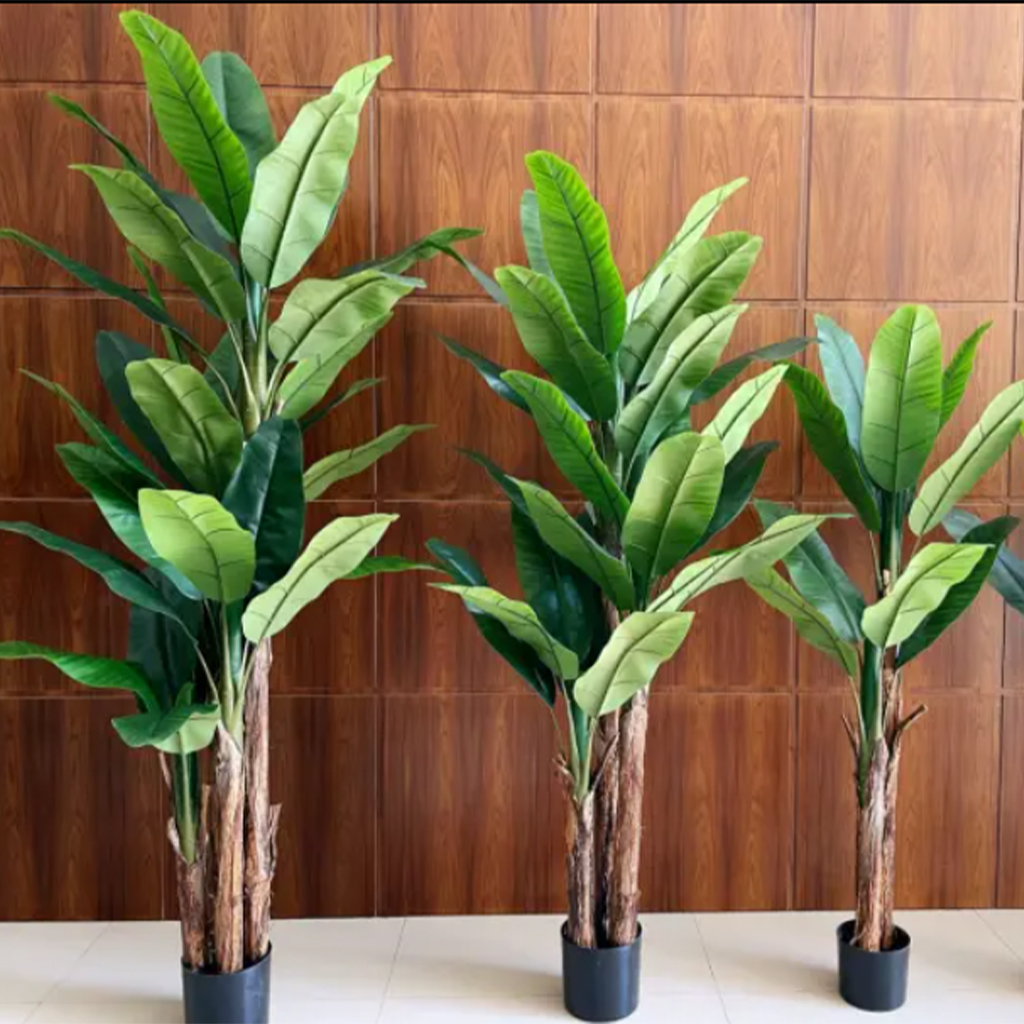 Izrađeno od vrhunskih materijala, ovo drvo vjerno imitira izgled pravih banana biljaka, s bogatim zelenim listovima koji odišu svježinom. Otporno na habanje i UV zračenje, garantirano će zadržati svoj sjaj godinama.